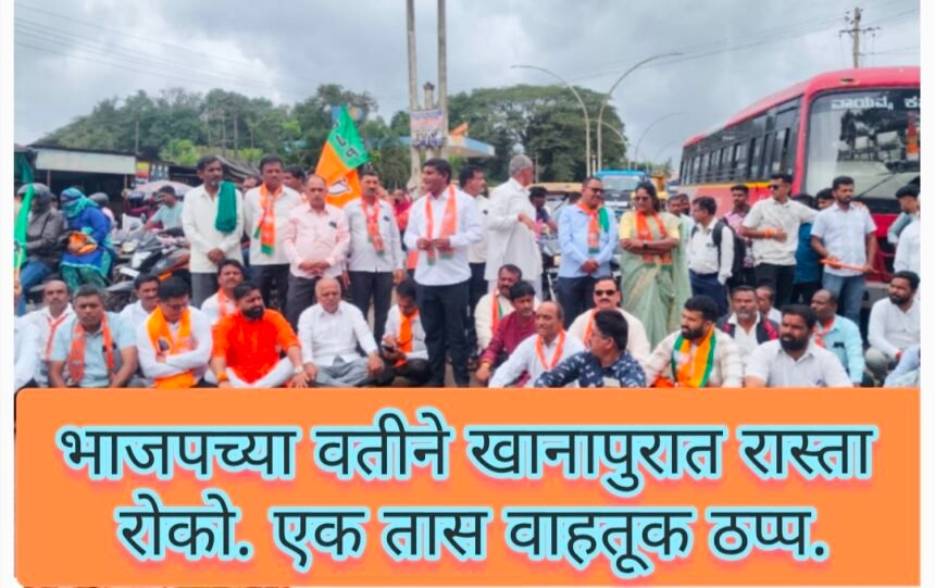 ಭಾಜಪ ಪಕ್ಷದ ವತಿಯಿಂದ ಖಾನಾಪುರದಲ್ಲಿ ರಸ್ತೆ ತಡೆ ಆಂದೋಲನ – ಒಂದು ಗಂಟೆ ವಾಹನ ಸಂಚಾರ ಸ್ಥಗಿತ.
