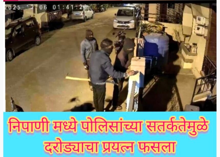 निपाणीत शस्त्रधारी चार चोरट्यांकडून धाडसी घरफोडीचा प्रयत्न; पोलिसांच्या सतर्कतेने टळली मोठी घटना.