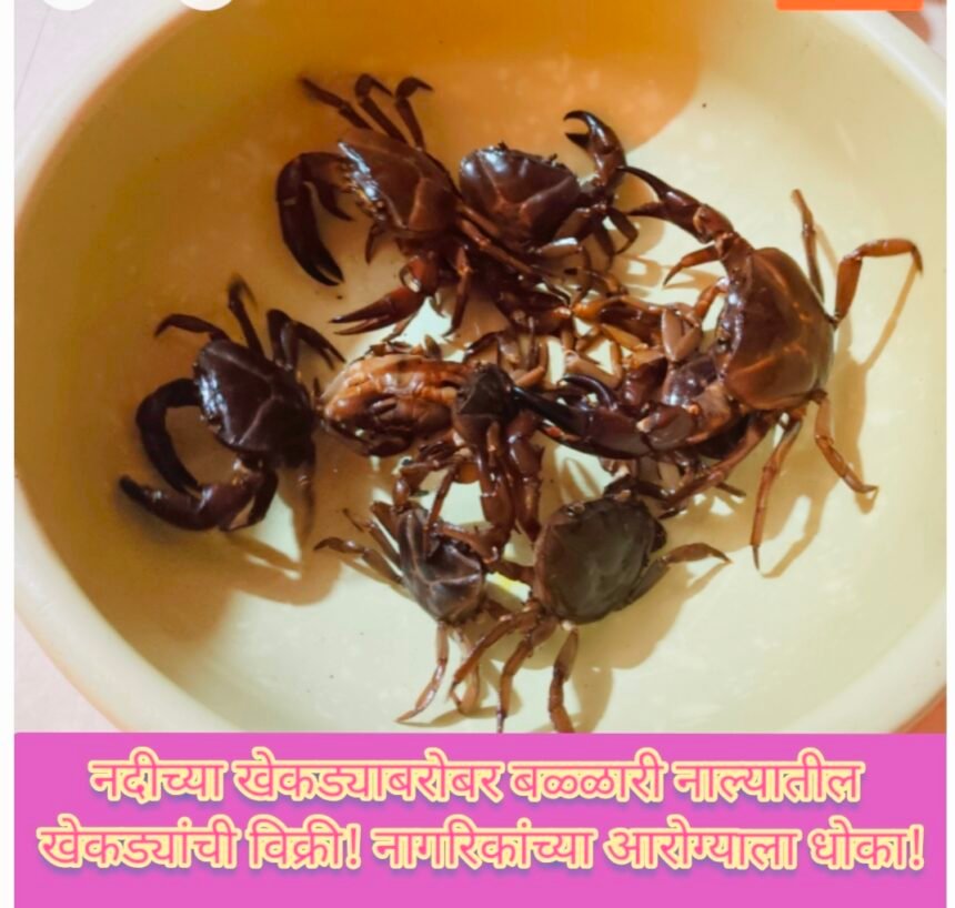 खेकड्यांची आवक वाढली! नदीच्या खेकड्याबरोबर बळ्ळारी नाल्यातील खेकड्यांची विक्री! नागरिकांच्या आरोग्याला धोका!