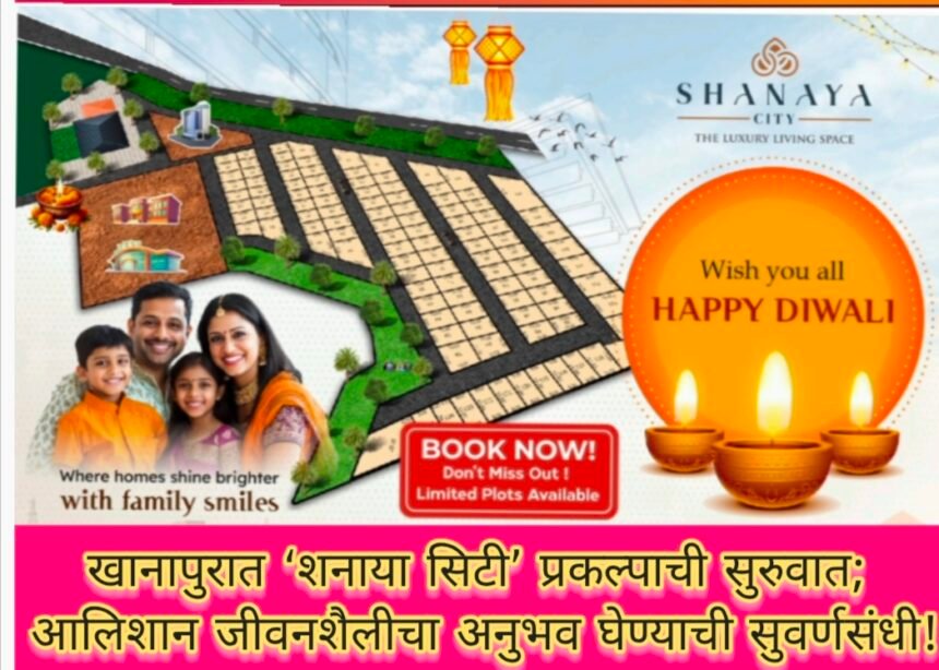 खानापूर (ता.19): दीपावली आणि गुढीपाडव्याच्या पार्श्वभूमीवर ‘शनाया रिॲलिटी’ तर्फे नागरिकांना हार्दिक शुभेच्छा देण्यात आल्या असून, त्यांच्या नव्या आलिशान गृहप्रकल्पाची घोषणा करण्यात आली आहे.