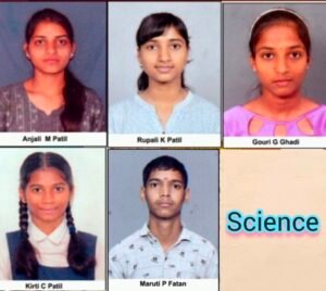 विज्ञान विभागात कुमारी अंजली पाटील हिने प्रथम क्रमांक मिळविला असून कुमारी रूपाली पाटील हिने द्वितीय तर कुमारी गौरी घाडी हिने तृतीय क्रमांक पटकाविला आहे. तर मारुती पी फटाण याने चौथा व कीर्ती सी पाटील हिने पाचव्या क्रमांकाने उत्तीर्ण होत महाविद्यालयाचा नावलौकिक वाढविला आहे.