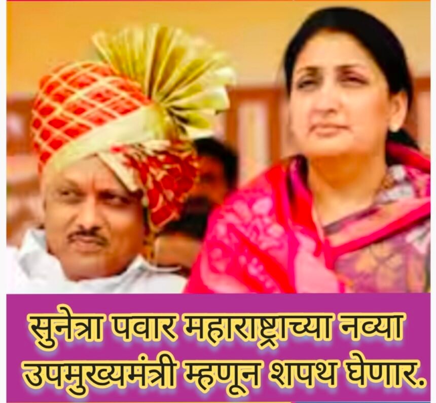 ಸುನೇತ್ರಾ ಪವಾರ್ ಮಹಾರಾಷ್ಟ್ರ ರಾಜ್ಯದ ಹೊಸ ಉಪಮುಖ್ಯಮಂತ್ರಿಯಾಗಿ; ನಾಳೆ ಸಂಜೆ 5 ಗಂಟೆಗೆ ಪ್ರಮಾಣ ವಚನ ಸ್ವೀಕಾರ..
