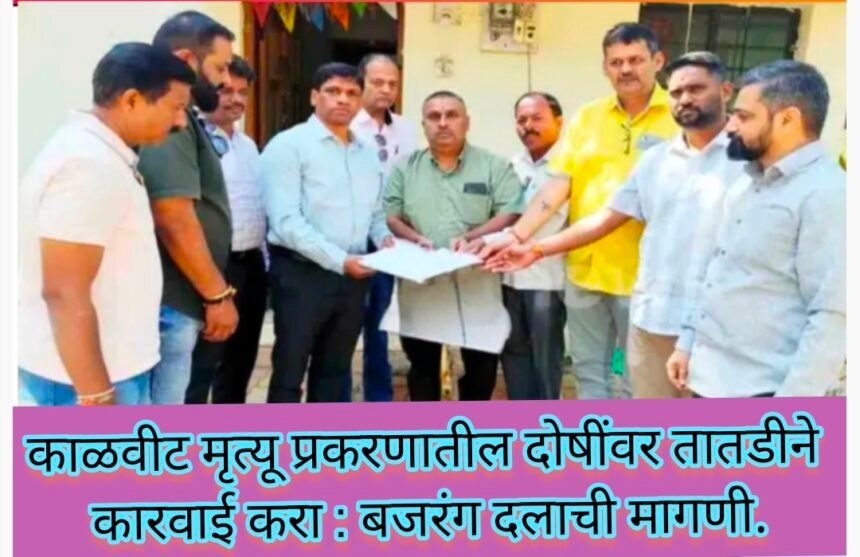 काळवीट मृत्यू प्रकरणातील दोषींवर तातडीने कारवाई करा : बजरंग दलाची मागणी.