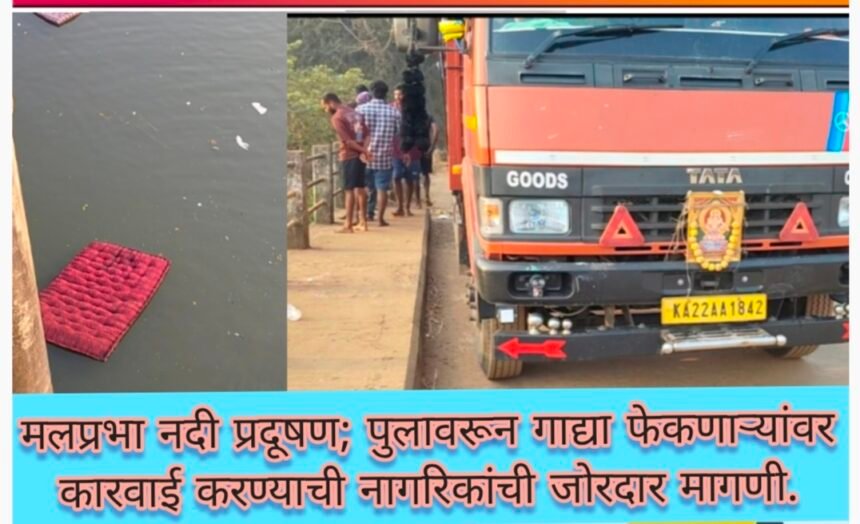 मलप्रभा नदी प्रदूषण; पुलावरून गाद्या फेकणाऱ्यांवर कारवाई करण्याची नागरिकांची जोरदार मागणी