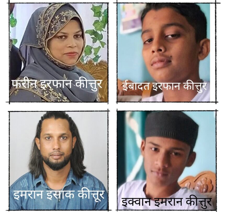 या दुर्घटनेत इमरान कित्तुर व इसरा इरफान कित्तुर (वय 17) हे बचावले आहेत.