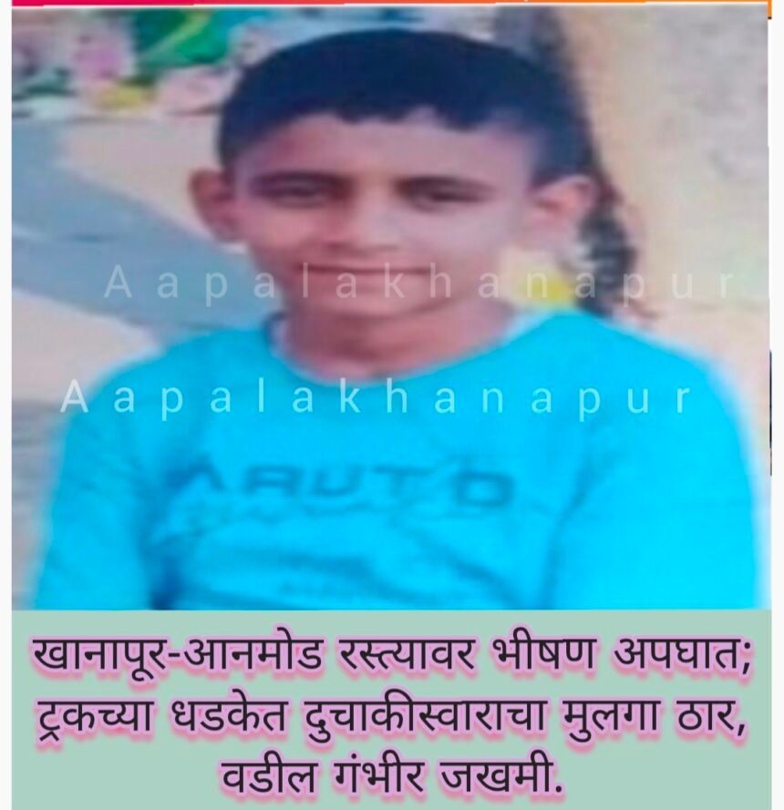 खानापूर-आनमोड रस्त्यावर भीषण अपघात; ट्रकच्या धडकेत दुचाकीस्वाराचा मुलगा ठार, वडील गंभीर जखमी.