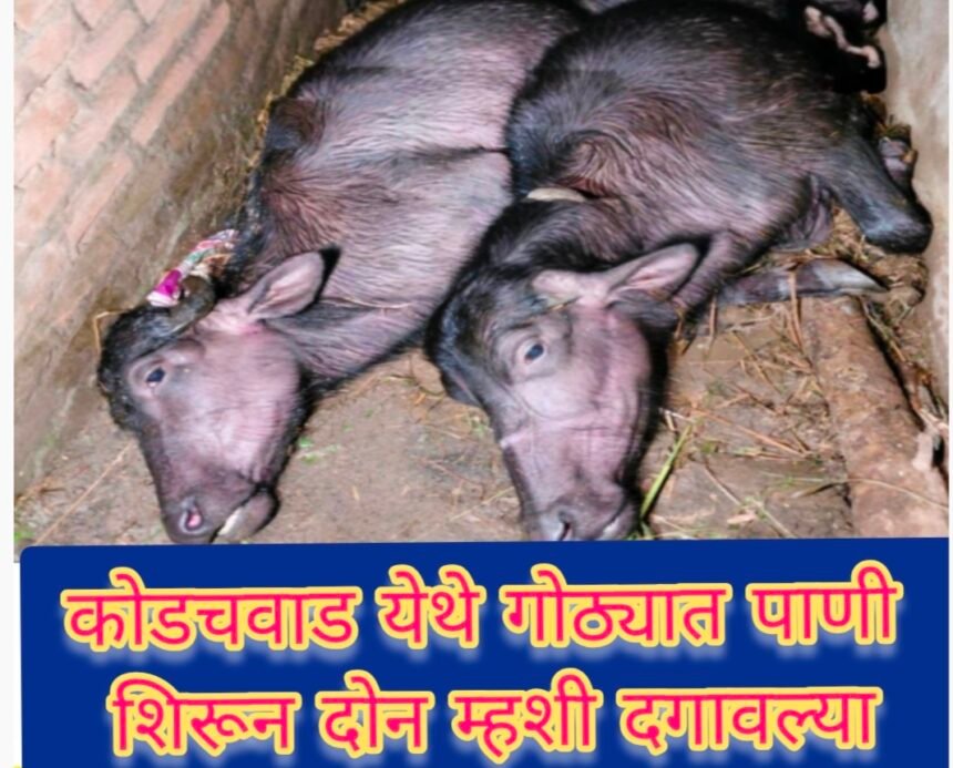 कोडचवाड येथे अवकाळीचा फटका! गोठ्यात पाणी शिरून दोन म्हशी दगावल्या; शेतकऱ्याचे लाखोंचे नुकसान.