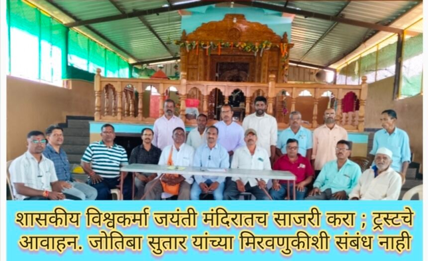 शासकीय विश्वकर्मा जयंती मंदिरातच साजरी करा ; ट्रस्टचे आवाहन.
